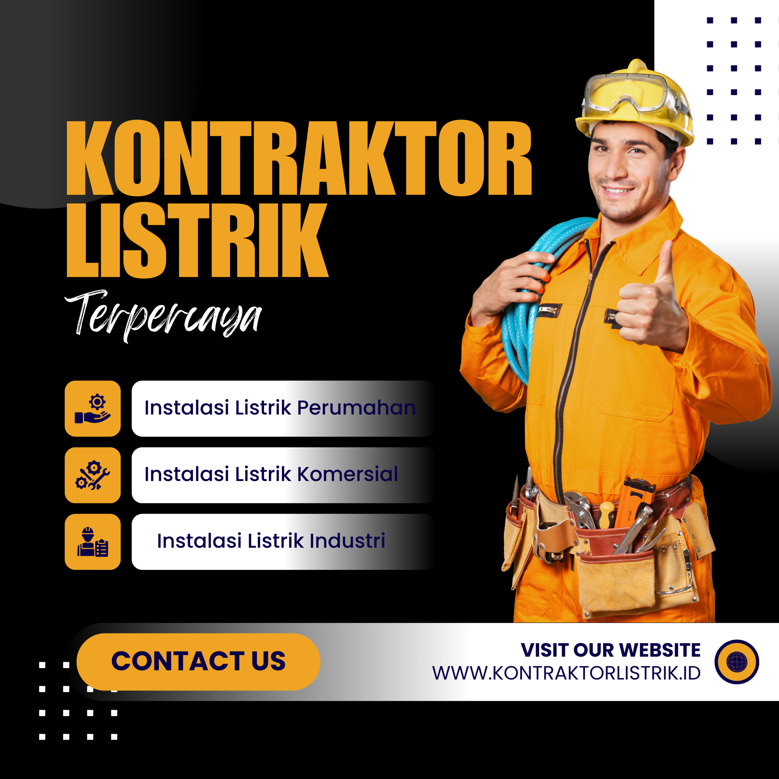 Kontraktor instalasi listrik profesional terpercaya di Indonesia, melayani proyek industri dan perumahan dengan standar keamanan, kualitas terbaik, serta solusi kelistrikan efisien dan modern.